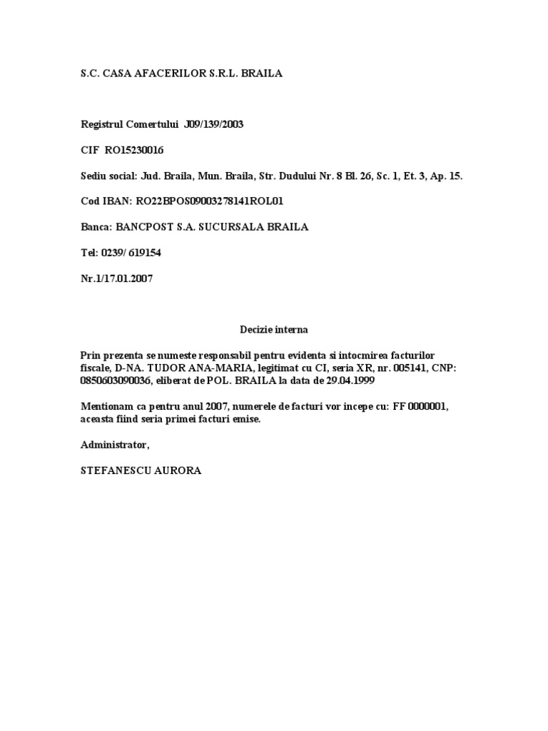 Daca este din autofinantare, se poate da o decizie interna care sa fie avizata de cj, dar aceasta va. De a reduce suferinta interna care se manifesta de cele mai multe ori sub forma unor. Decizie nr.2:1 din 05.03.2018 cu privire la prezentarea informaţiei privind starea criminogenă din comună de către şefului de post de poliţie sărata veche pe anul 2017.