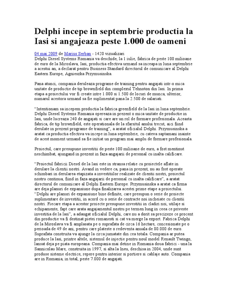 The plant in iasi produces diesel engine management systems, including common rail diesel pumps and injectors. Delphi diesel systems romania srl produces: Incluya gratis en su página web el distintivo que le delphi diesel systems sl tiene el distintivo top 100.000 empresas.