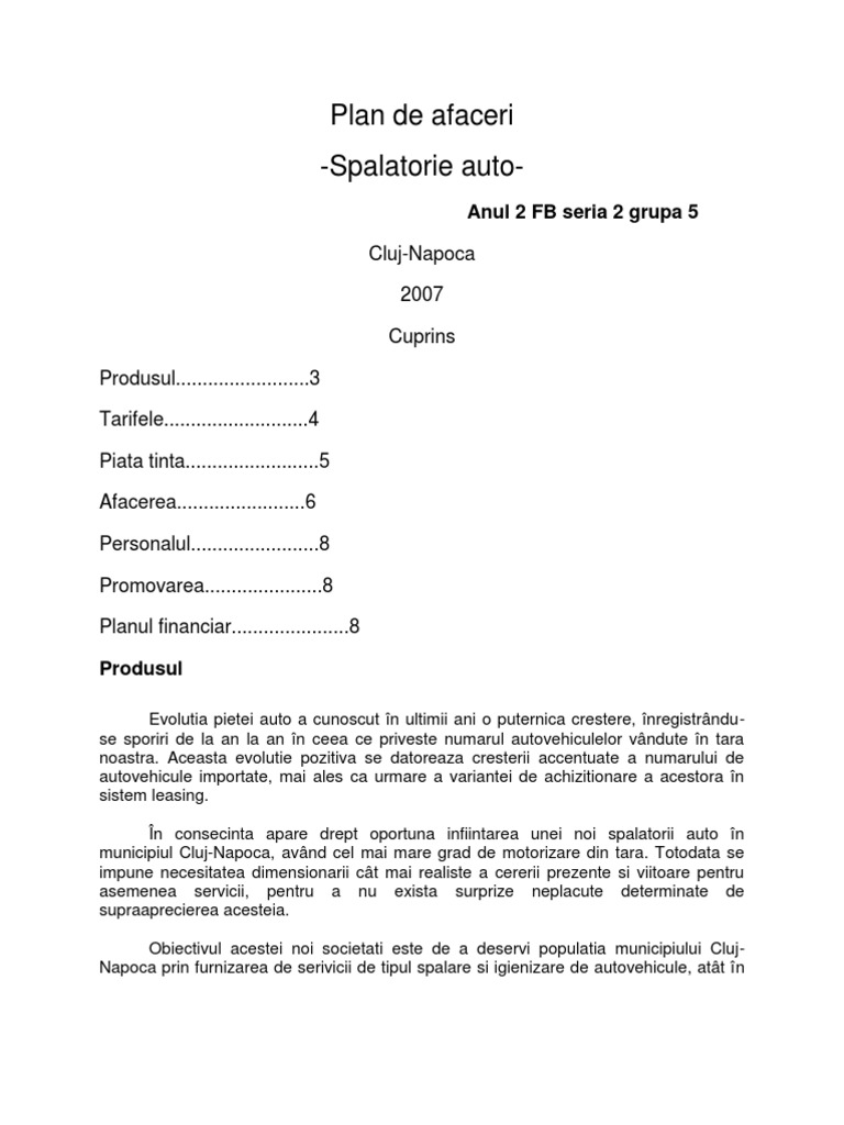 Planuri de afaceri / 7 decembrie 2011. Poti vizualiza imagini din document Plan de afaceri spalatorie auto.